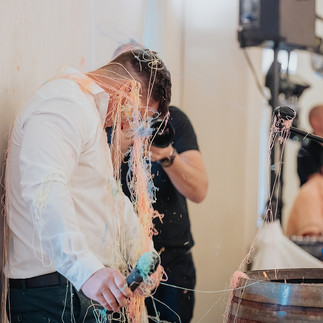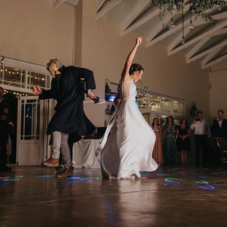 In a vibrant celebration that extended deep into the night, Wynand and Jané's wedding reception unfolded as an unforgettable party. The atmosphere was electric as guests reveled in the rhythm of a live band, their feet moving in perfect harmony with the music. The dance floor transformed into a sea of joy, filled with friends and family united by their shared love for the couple.